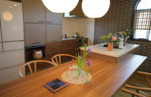 ダイニングテーブルが一体となったタイプです
