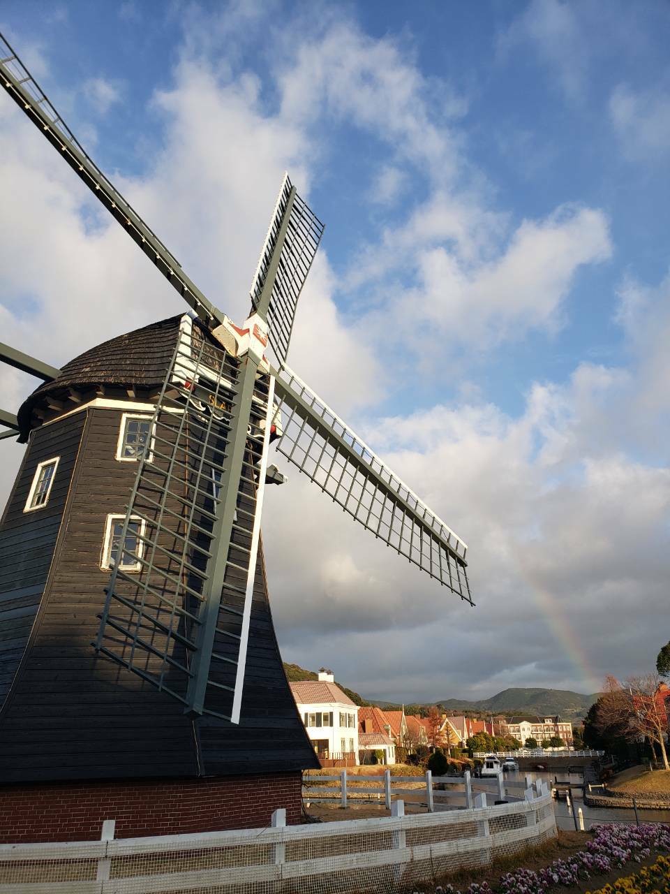 ちょうど風車のところに虹がかかっており、シャッターチャンスと言わんばかりに5分程写真撮影をしてしまいました。
