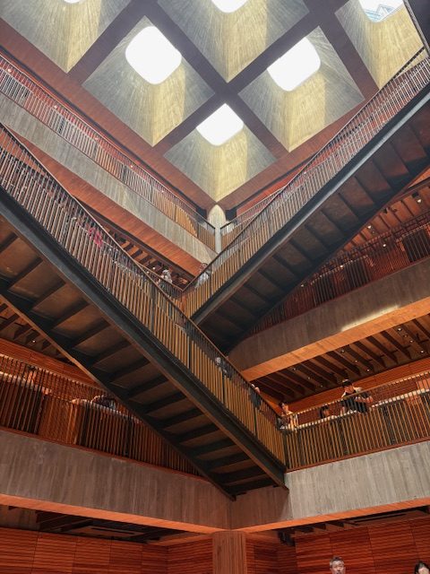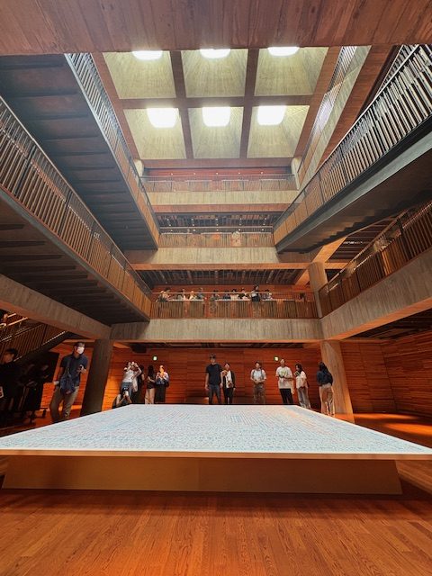外部とは対照的に木がふんだんにつかわれ少し厳かさを感じる空間に感じました。