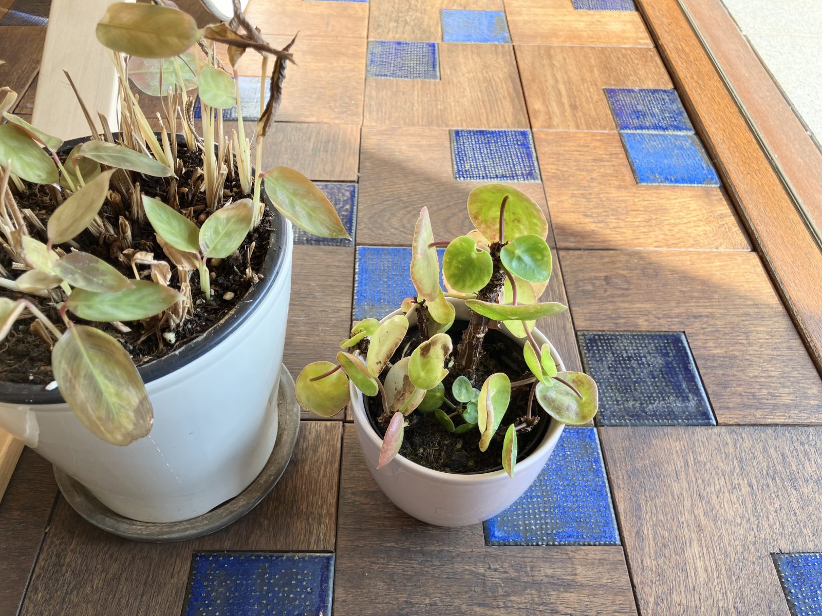 右手は、丸い葉が可愛らしいピレア・ペペロミオイデス